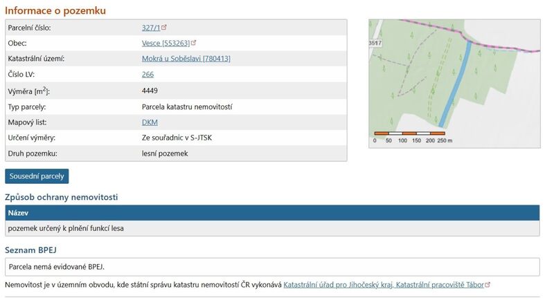 - Na pozemku p.č. 250/1 o rozloze 1861 m² je zásoba borovice 178 let