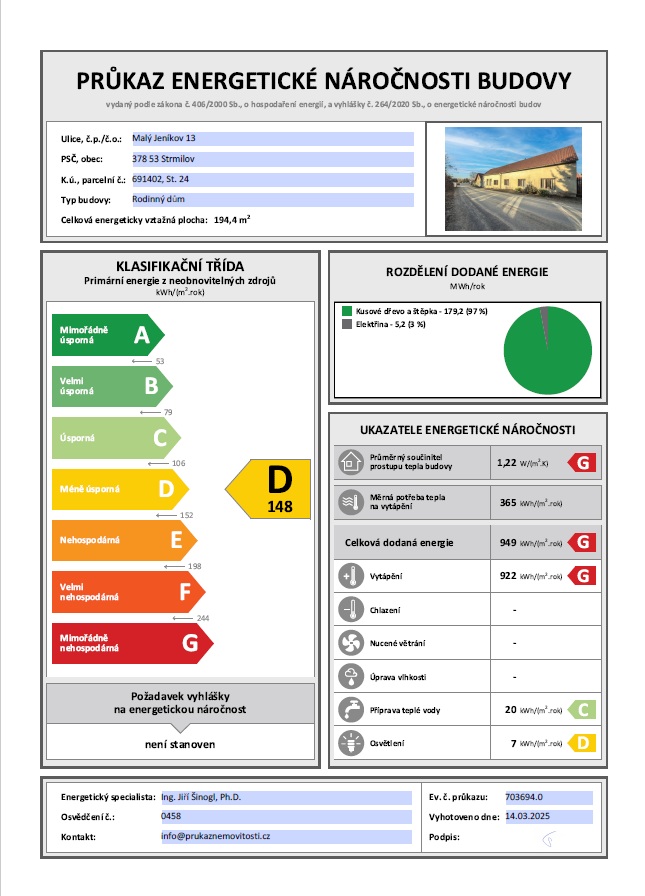 Na obytnou budovu přímo navazuje objekt s kotelnou (kotel na tuhá paliva a